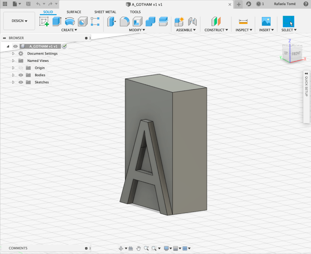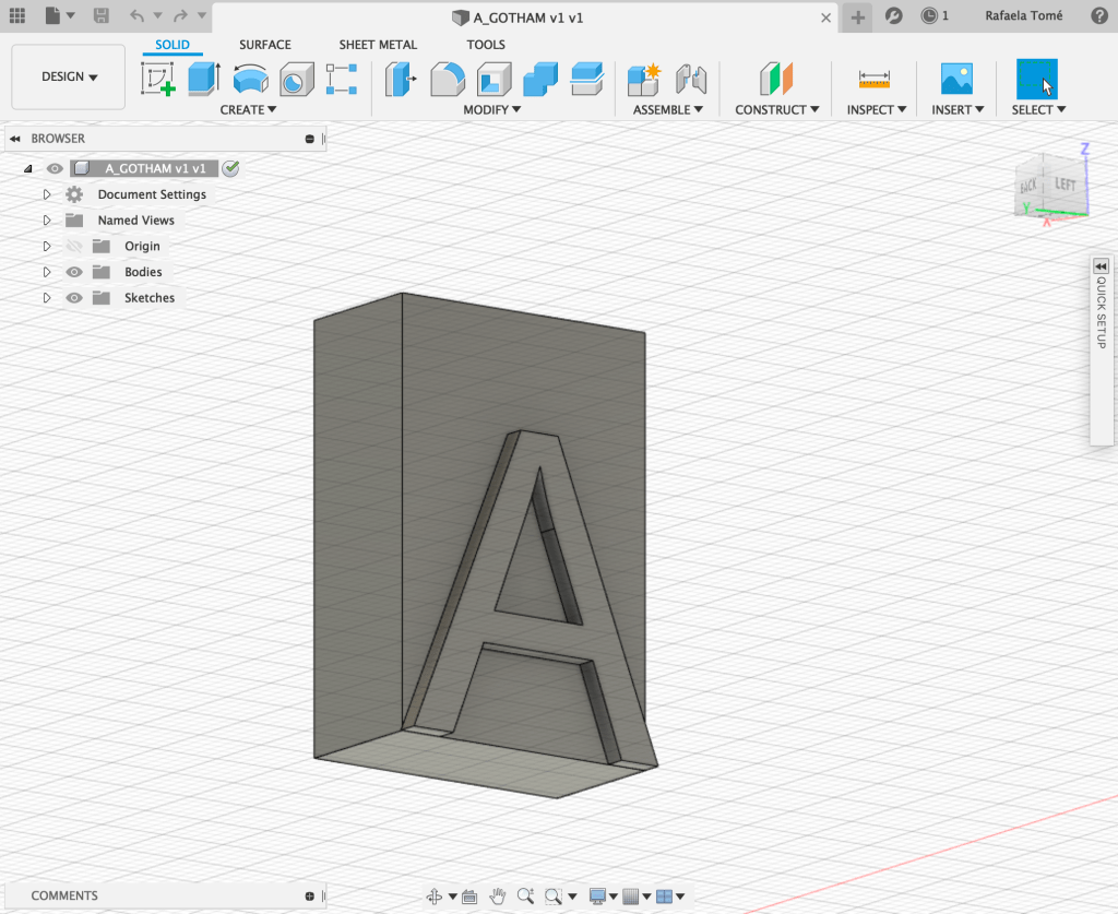 O objetivo é fazer alguns caracteres de uma fonte tipográfica já existente, em impressão 3D, e alguns utensílios de uma tipografia utilizando corte por CNC (ex: caixa tipográfica, galé). Posteriormente irei simular em realidade aumentada um móvel com várias caixas tipográficas, onde se poderá saber qual o tipo e corpo da letra antes mesmo de as abrir.
