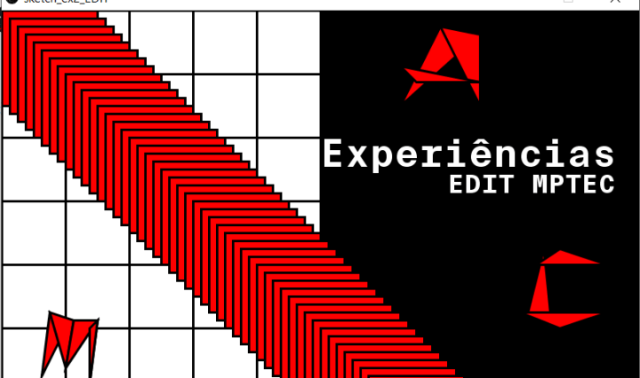 1º exercício Primeira experiência com processing «Processing type» [ código disponível no fim do artigo ] size (500,300);background (20); //PnoStroke();fill(200);rect(20,10,7,140);rect(20,10,30,120);//RstrokeWeight (7);strokeCap (BEVEL);stroke (200);line(60,120,84,148);noStroke();fill(200);rect(55,10,7,140);rect(55,10,30,120);//Orect(90,10,30,140);//Crect(125,10,7,140);rect(125,10,30,80);rect(125,130,30,20);//Erect(160,10,7,140);rect(160,10,30,80);rect(160,110,30,10);rect(160,130,30,20); //Srect(195,10,7,110);rect(195,10,30,80);rect(202,110,23,40);rect(195,130,7,20);//Srect(230,10,7,110);rect(230,10,30,80);rect(237,110,23,40);rect(230,130,7,20);//Irect(265,10,7,140);//Nrect(277,10,7,140);rect(277,10,20,100);rect(287,110,20,40);rect(300,10,7,140);//Grect(312,10,7,140);rect(312,10,30,80);rect(312,130,30,20);rect(332,110,20,40);//…rect(357,110,30,40);rect(392,120,30,30);rect(427,130,30,20); //typenoFill();stroke(255);arc(110, 250, 100, 80, 0, PI / 2.0); // lower quarter circlerect(160,70,1,177);line(90,160,263,110);arc(200, 175, 50, 50, 0, … Continuar a ler PROCESSING [MOD. I]